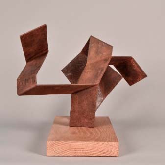 Acero corten y roble macizo. 36 x42 x40 cm.